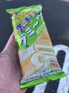 アイスもグミも大好きな私。 モナカアイスの中にグミが入っているということで、味や食感がずっと気になってました。 ここで気になるのは、グミならアイスの中で硬くなってしまうのではないかということ。 ところがこのグミ、冷凍して